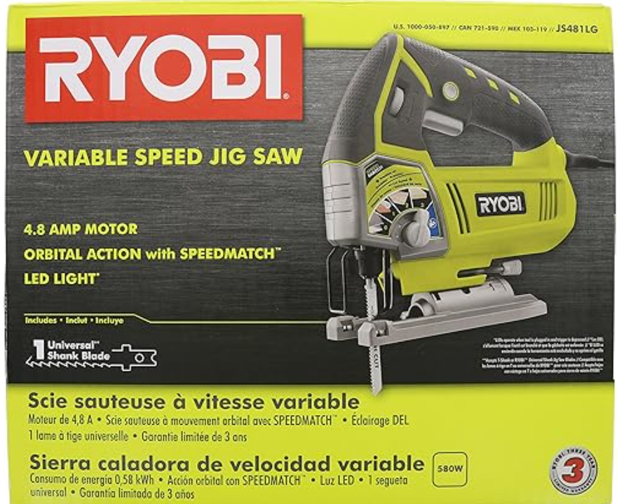 RYOBI JS651L1 6.1 Amp Variable Speed Orbital Jigsaw With Speed Match