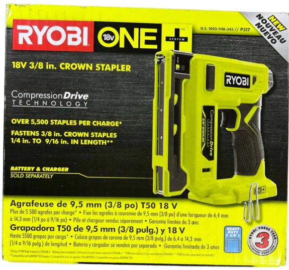 Ryobi 18-Volt ONE+ Cordless Compression Drive 3/8 in. Crown Stapler (Tool Only) P317