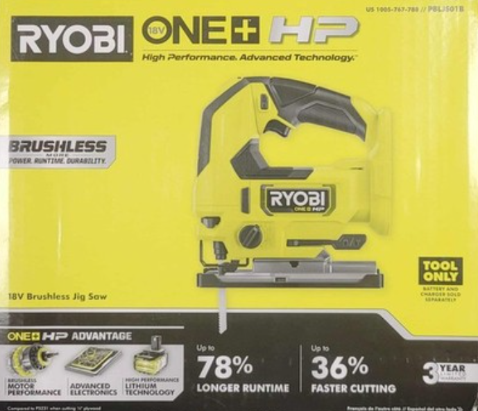 RYOBI ONE+ HP 18V Brushless Cordless Jig Saw (Tool Only) PBLJS01
