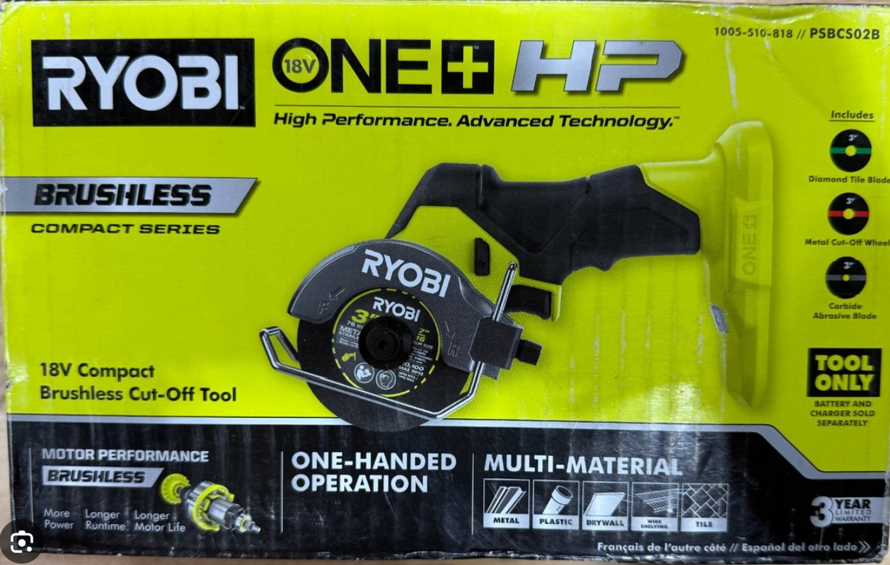 Ryobi PSBCS02 ONE+ HP 18V Brushless Cordless Compact Light Weight Cut-Off Tool (Tool Only)