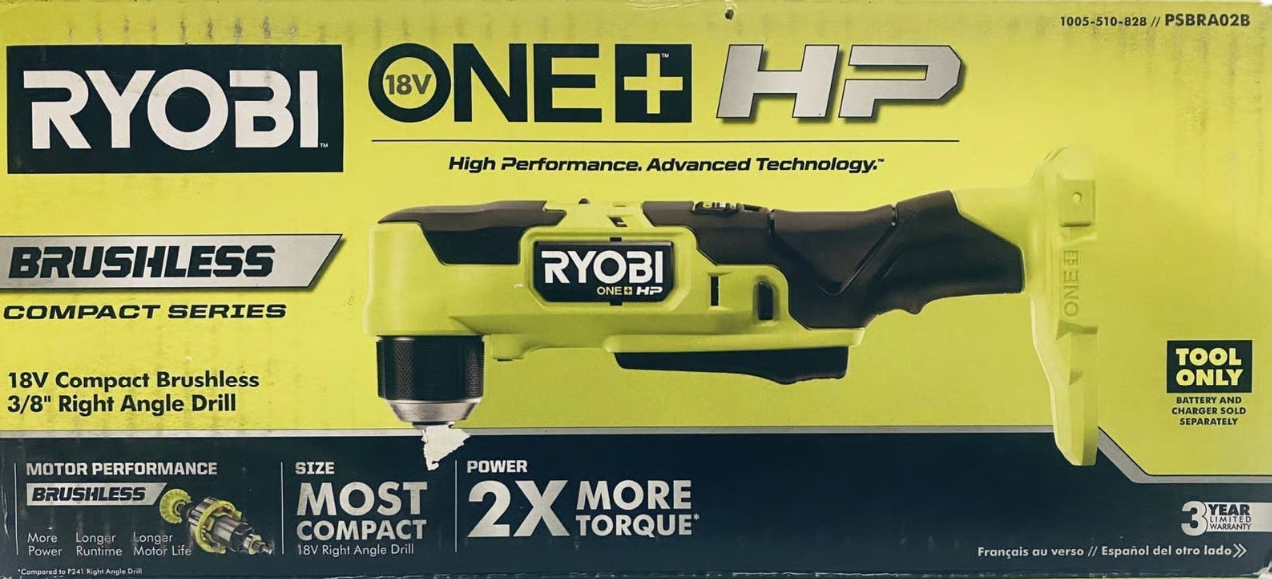 RYOBI ONE+ HP 18V Brushless Cordless Compact 3/8 in. Right Angle Drill (Tool Only) PSBR02B
